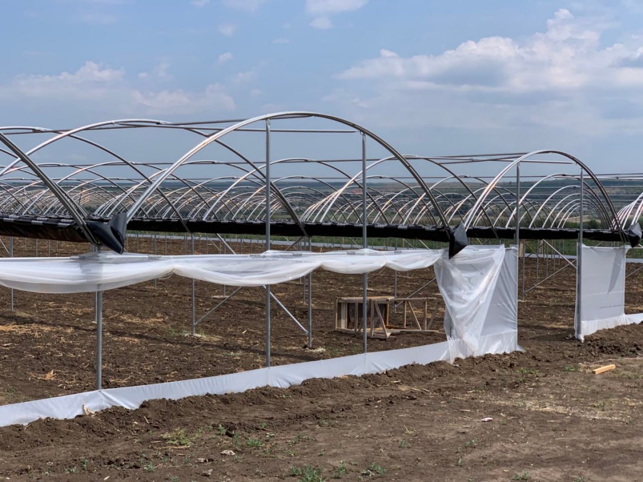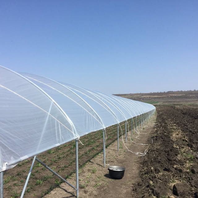 Întreaga suprafață a serei este acoperită cu folie de polietilenă de 180 microni, rezistentă la UV, cu grad ridicat de elongare și tratament anti-condens (AD). Folia este fixată cu rame și clame speciale și ancorată suplimentar cu funie pe întreaga lungime a ulucului, ceea ce sporește rezistența la vânturi puternice.
