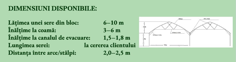Lățimea unei sere din bloc: 6–10 m